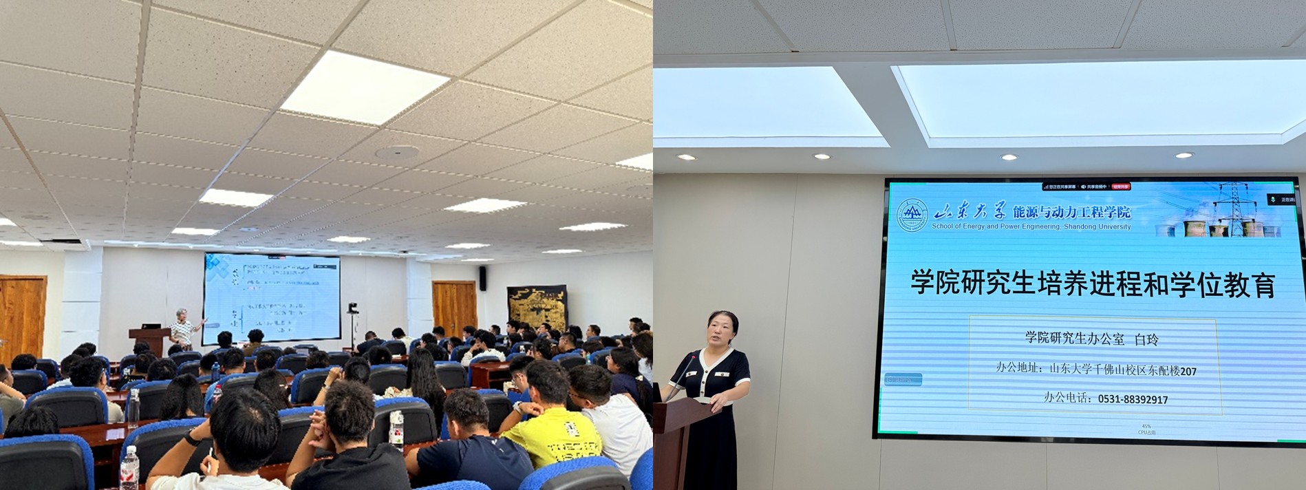 研究生秘书白玲、王美霞老师分别围绕研究生培养工作开讲,详细解读研究生培养全进程时间节点与核心任务,明确硕士、博士学位毕业标准与考核要求,指导新生制定个性化培养计划、熟悉选课操作及研究生管理系统使用流程,并讲解学院各项规章制度,让新生全面掌握研究生阶段目标任务与发展策略,为科研规划奠定基础。