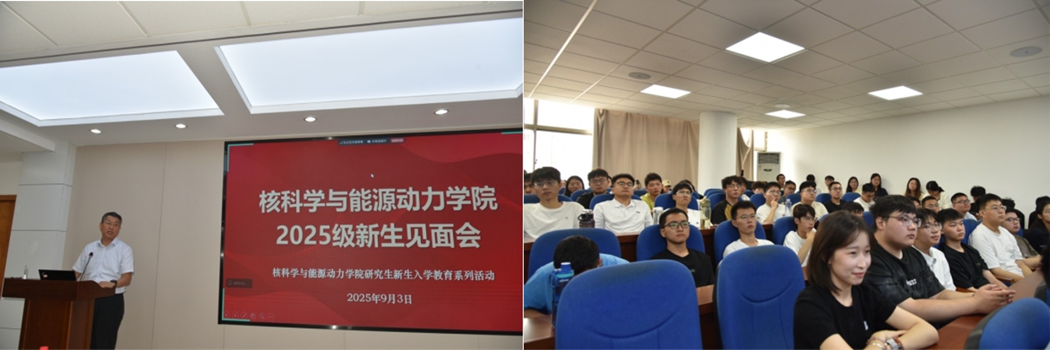 随后,副院长白书战从学科建设、科研成果、师资力量、就业形势等维度,以详实数据与生动案例展现学院在核科学技术与能源动力领域的行业影响力与广阔前景,让新生对学院实力有了清晰认知,进一步增强认同感与归属感。