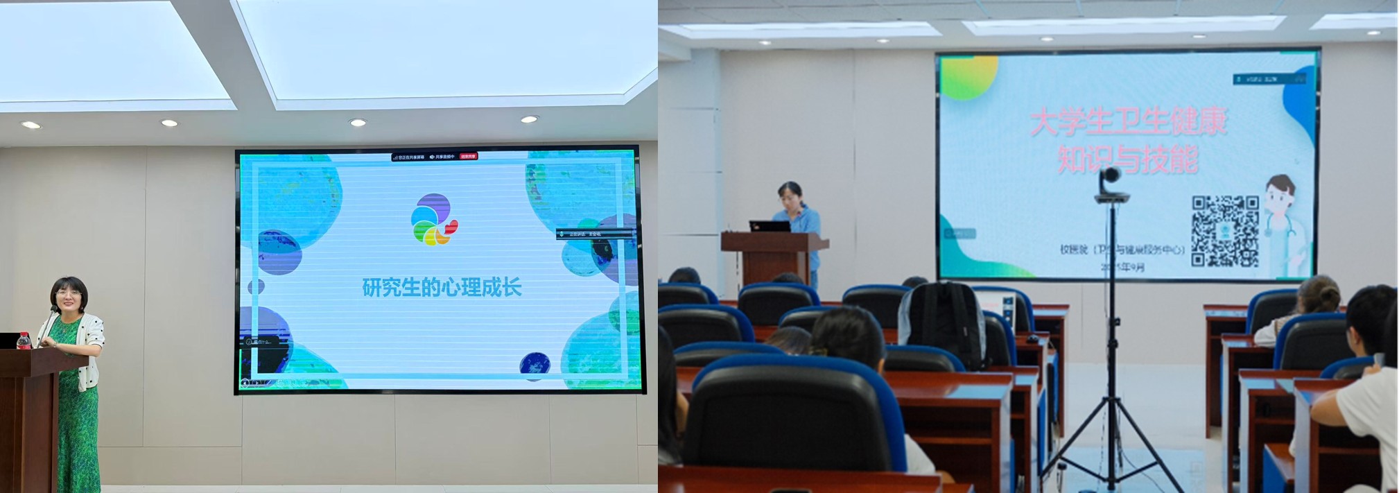 除了实验室安全,心理健康安全和校园卫生安全也是重中之重。心理咨询中心(千佛山校区负责人)曹丽丽老师以“守护心灵晴空,赋能科研征途”为题开讲,结合研究生群体特点,梳理学业压力、科研挑战、人际关系等方面的潜在心理困惑,从环境适应、认知调整、压力管理维度解析应对方法,并介绍校内心理咨询资源。校医院吕友缘老师围绕“自己是健康的第一责任人”,讲解健康生活方式、体检指标解读、传染病防控及应急自救技能,为新生健康保驾护航。