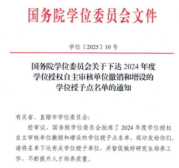 近日,国务院学位委员会发布《关于下达2024年度学位授权自主审核单位撤销和增设的学位授权点名单的通知》(学位[2025]10号),我们申报的“核科学与技术”一级学科博士学位授权点正式获批,将自2026年开始招生。