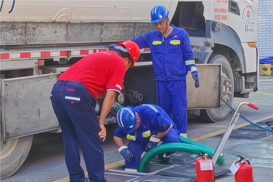 8月8日清晨,团队赴中国石化中深盐田港加油站观摩卸油全流程。现场技术人员介绍,仅油品残余导出就需8分钟,叠加防火、静电排查、数据录入等流程,单次作业总时长近12分钟。通过技术交流,双方达成共识:智能控制技术与新材料的融合应用,有望简化操作流程、降低人力成本,实现安全系数与作业效率双提升。
